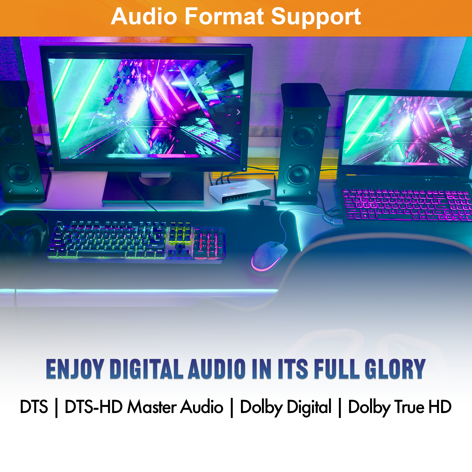 ✅ Supports digital audio formats such as Dolby Digital, DTS, DTS-HD Master Audio etc.
