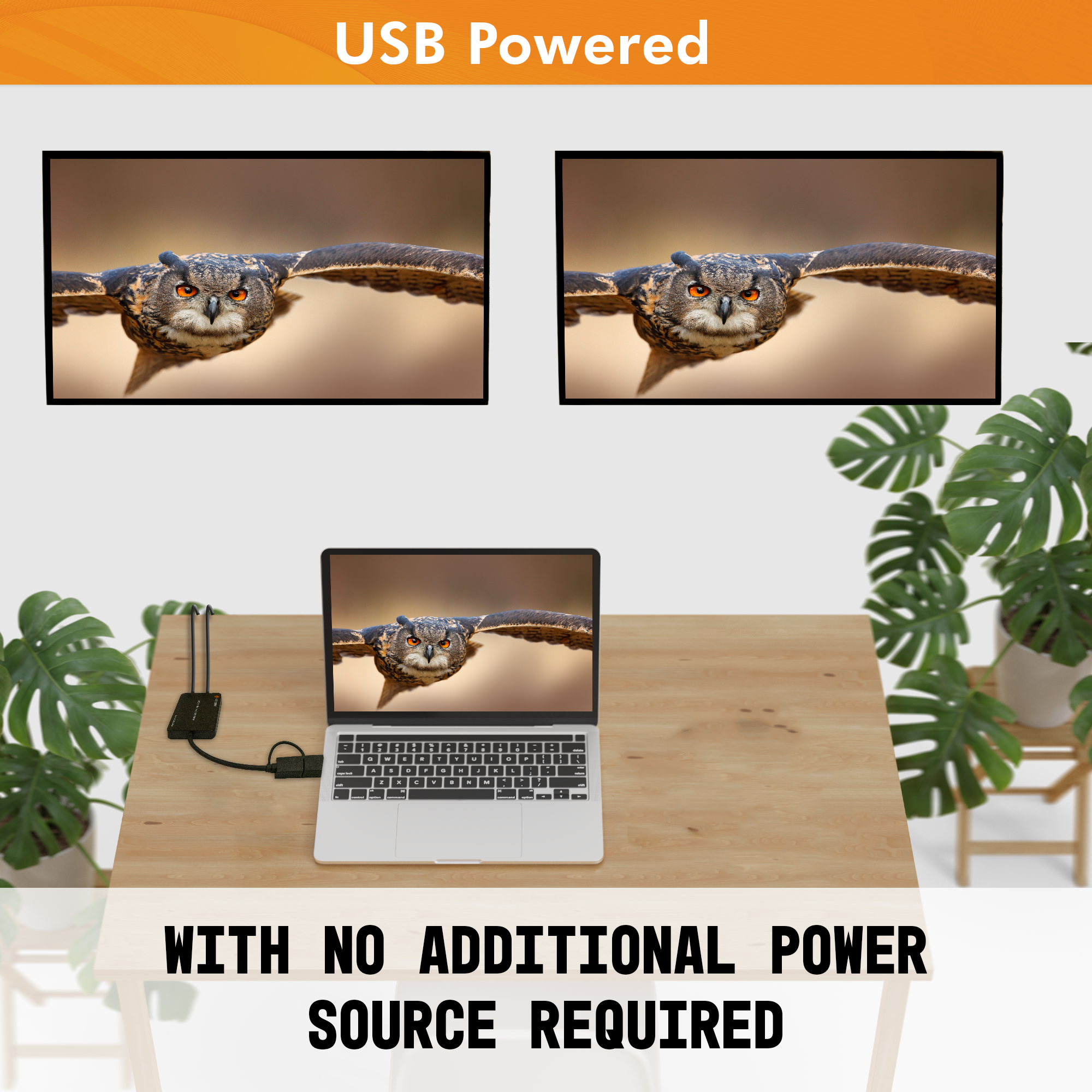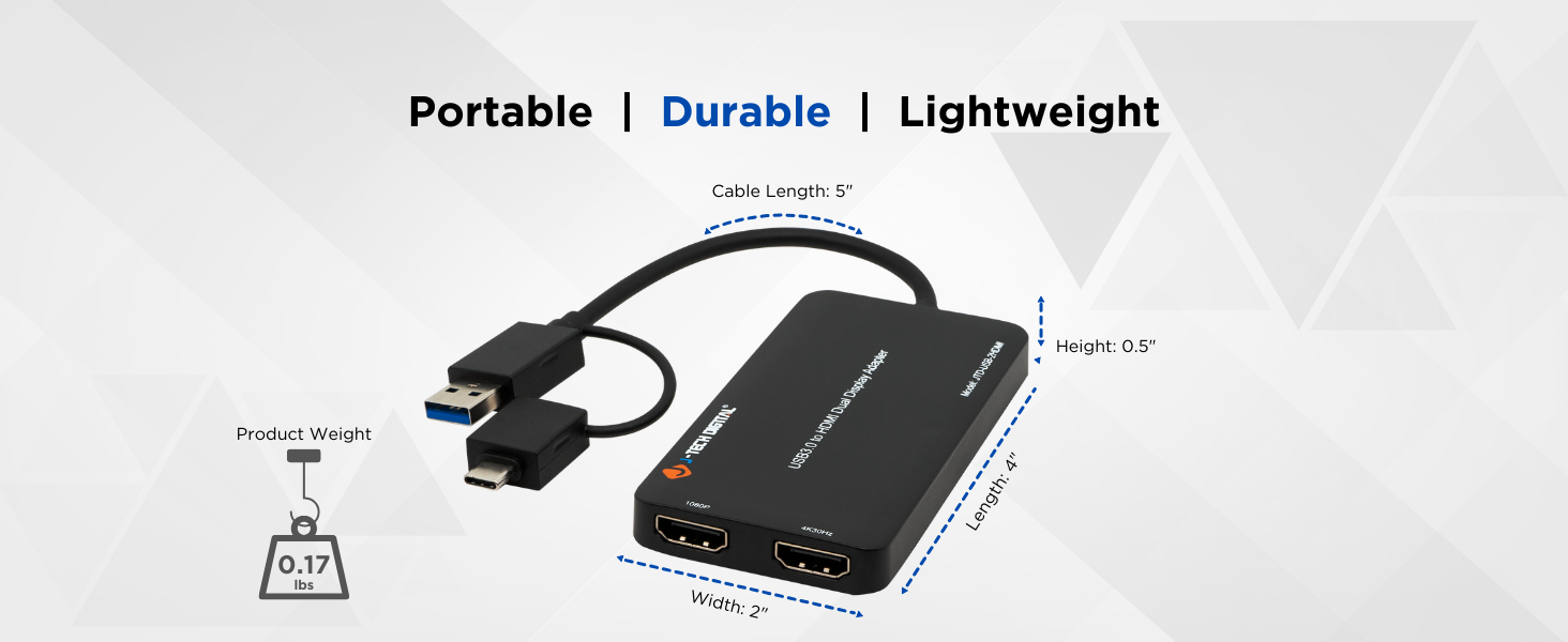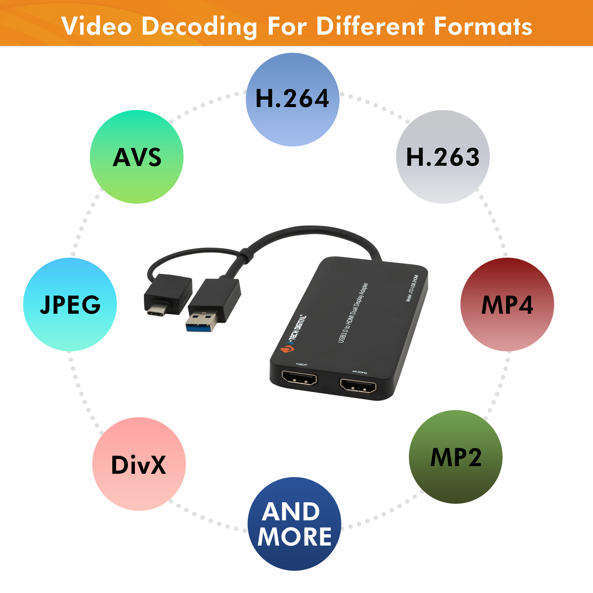USB Type-A/C to Dual HDMI adapter with 4K 30Hz & 1080P 60Hz support