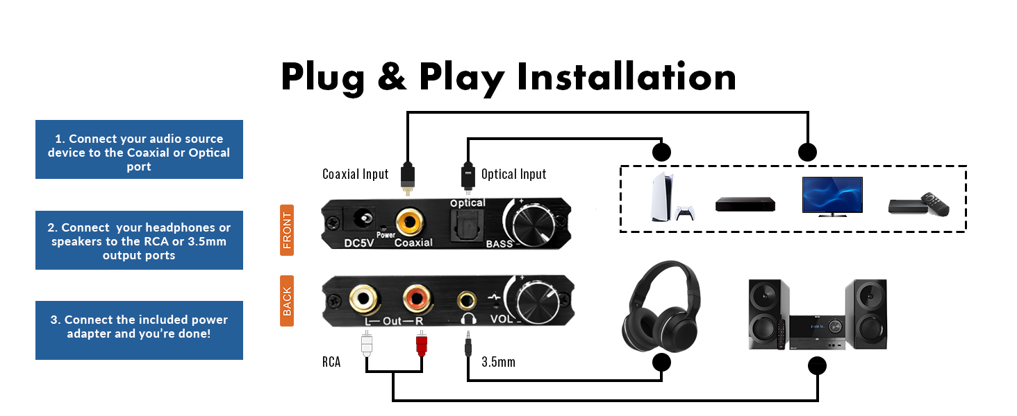 ✅ RCA & 3.5mm Analog Audio Output Ports