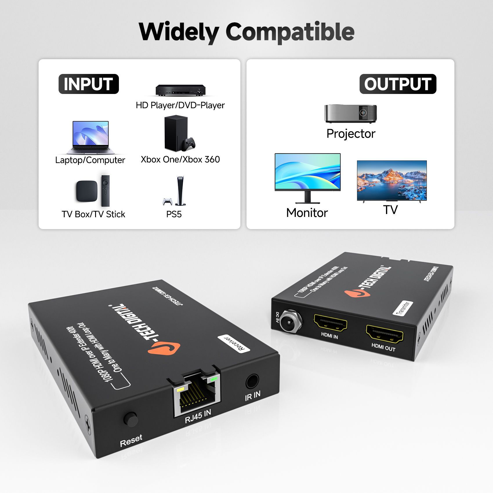 ✅ HDMI extender over single Cat5e/6/7. Extend 1080P up to 400ft. and 720P up to 660ft.