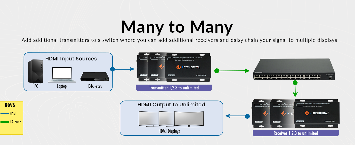 ✅ 3 HDMI Extension & Distribution Modes – Point to Point / One to Many / Many to Many