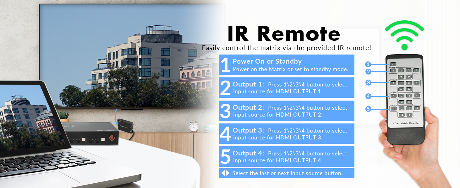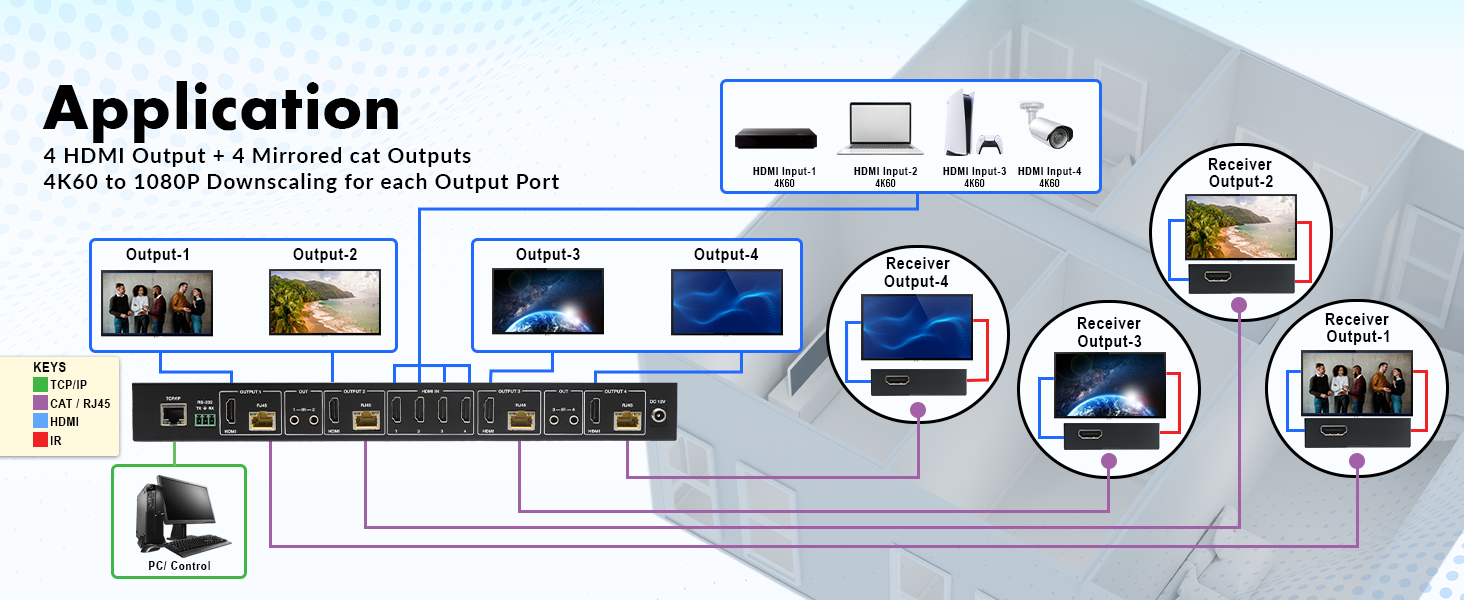 ✅ 4 HDMI Inputs | 4 HDMI Outputs + 4 Mirrored CAT output ports