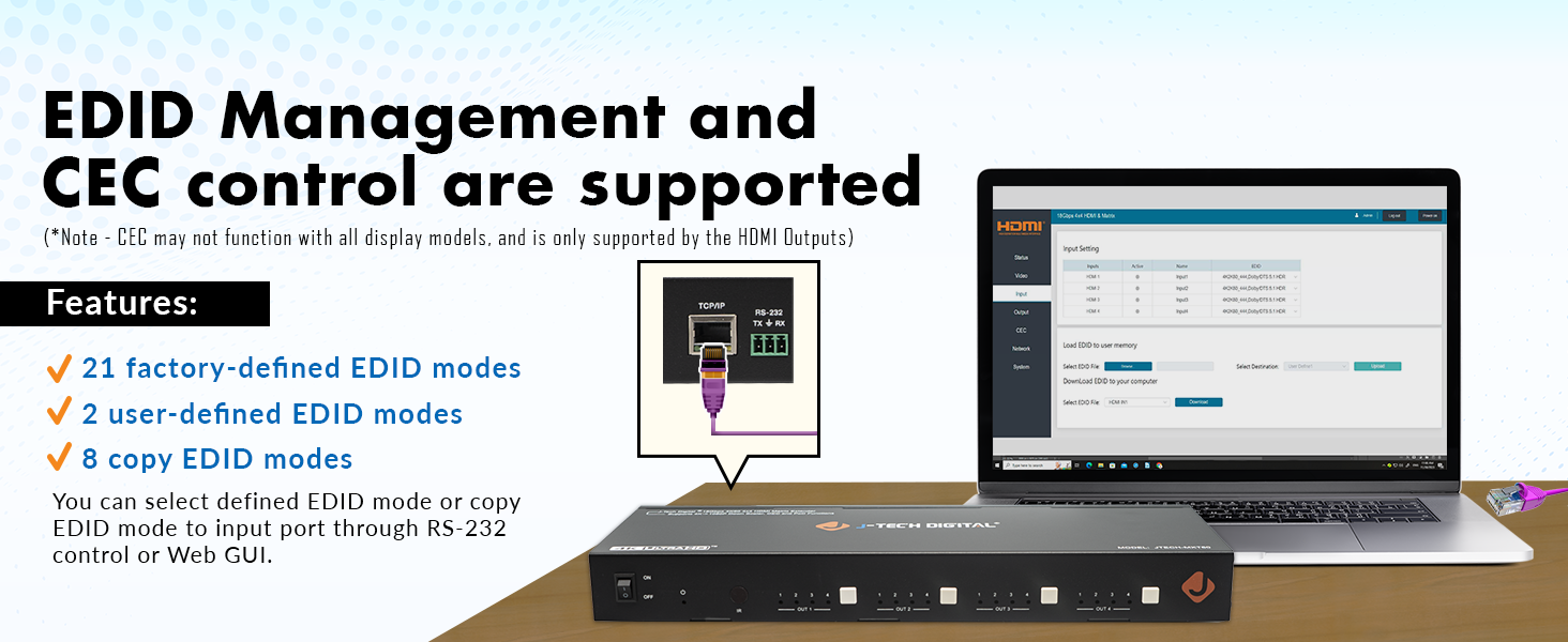 Still using a 1080p TV or projector? No problem. The MXT60 HDMI matrix switch allows users to downgrade a 4K 60Hz source signal to 1080p 60Hz at each output, meaning you can still enjoy all of the latest and greatest content on your 1080p display until you’re ready to upgrade!