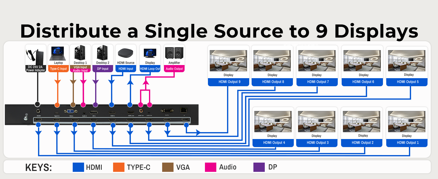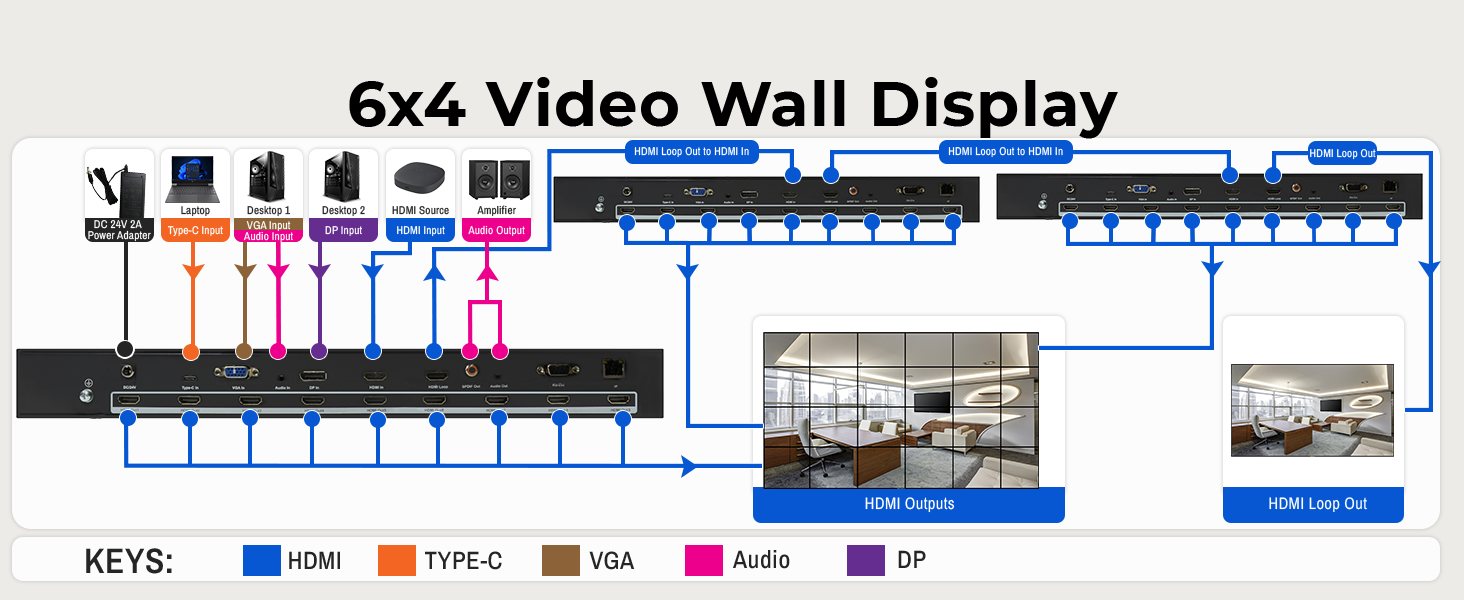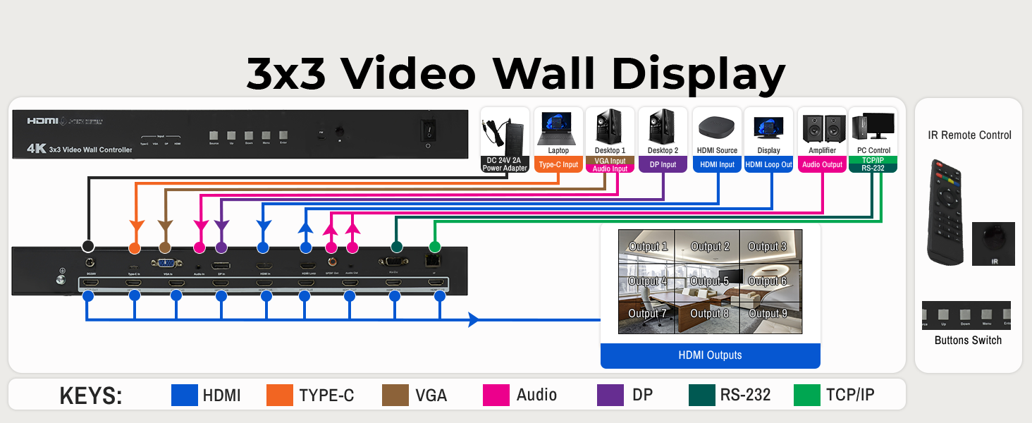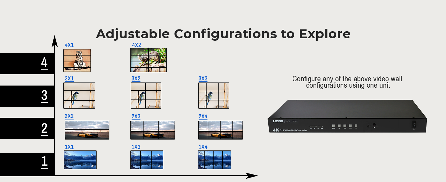 ✅3×3 Video Wall (Cascade units up to 10×10 video wall).
