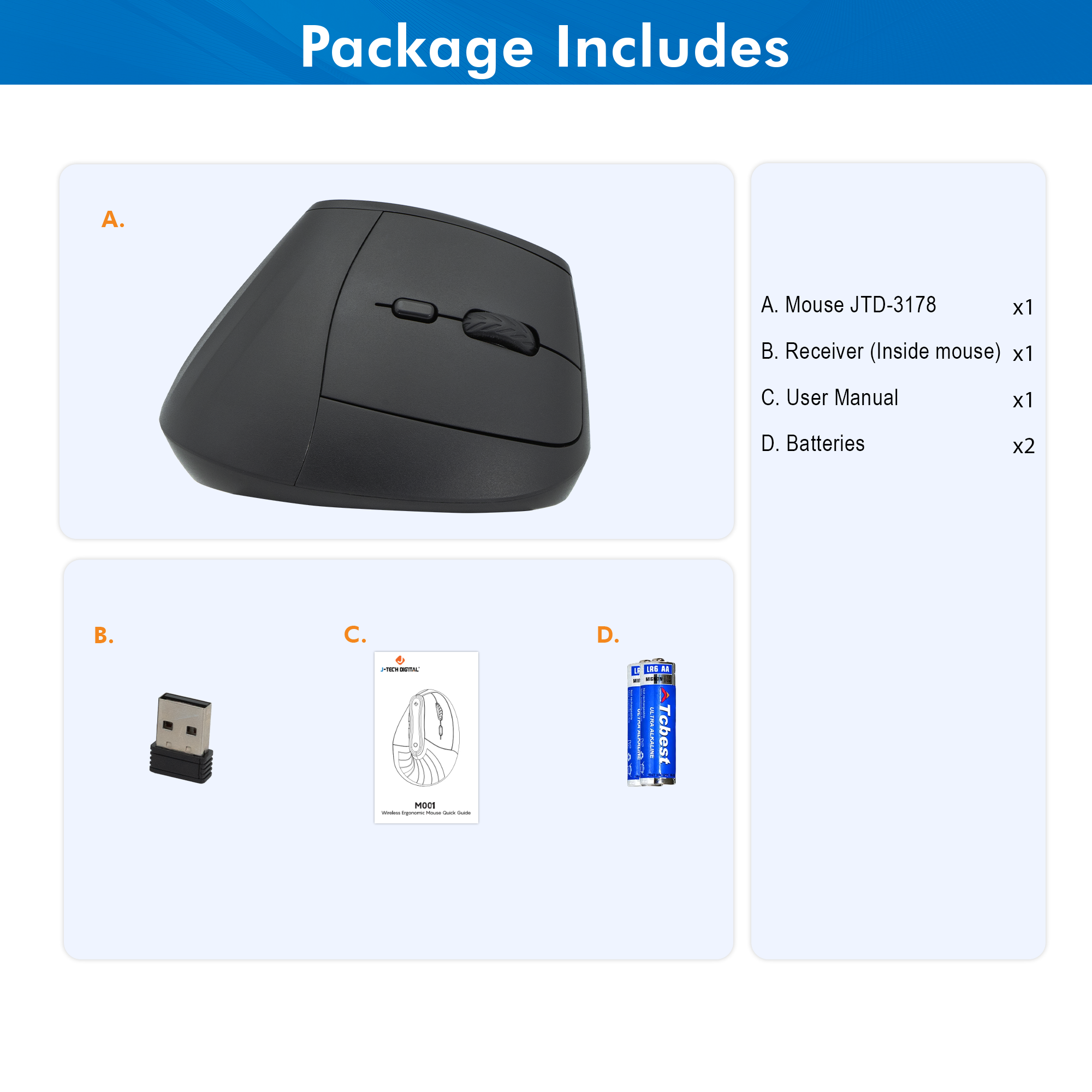 Say goodbye to arm and wrist strain caused by using a traditional mouse! The J-Tech Digital Wireless Vertical Ergonomic Mouse features a design that places your hand in a natural “handshake” position which greatly reduces strain on your wrist and arm especially during extended computer sessions. This wireless mouse features 2.4G wireless and 3.0 / 5.0 Bluetooth modes to allows for 3 multi-device connectivity. Made for small-medium sized hands and right-hand orientation, it’s never too late to start taking advantage of all the benefits that this wireless mouse has to offer!