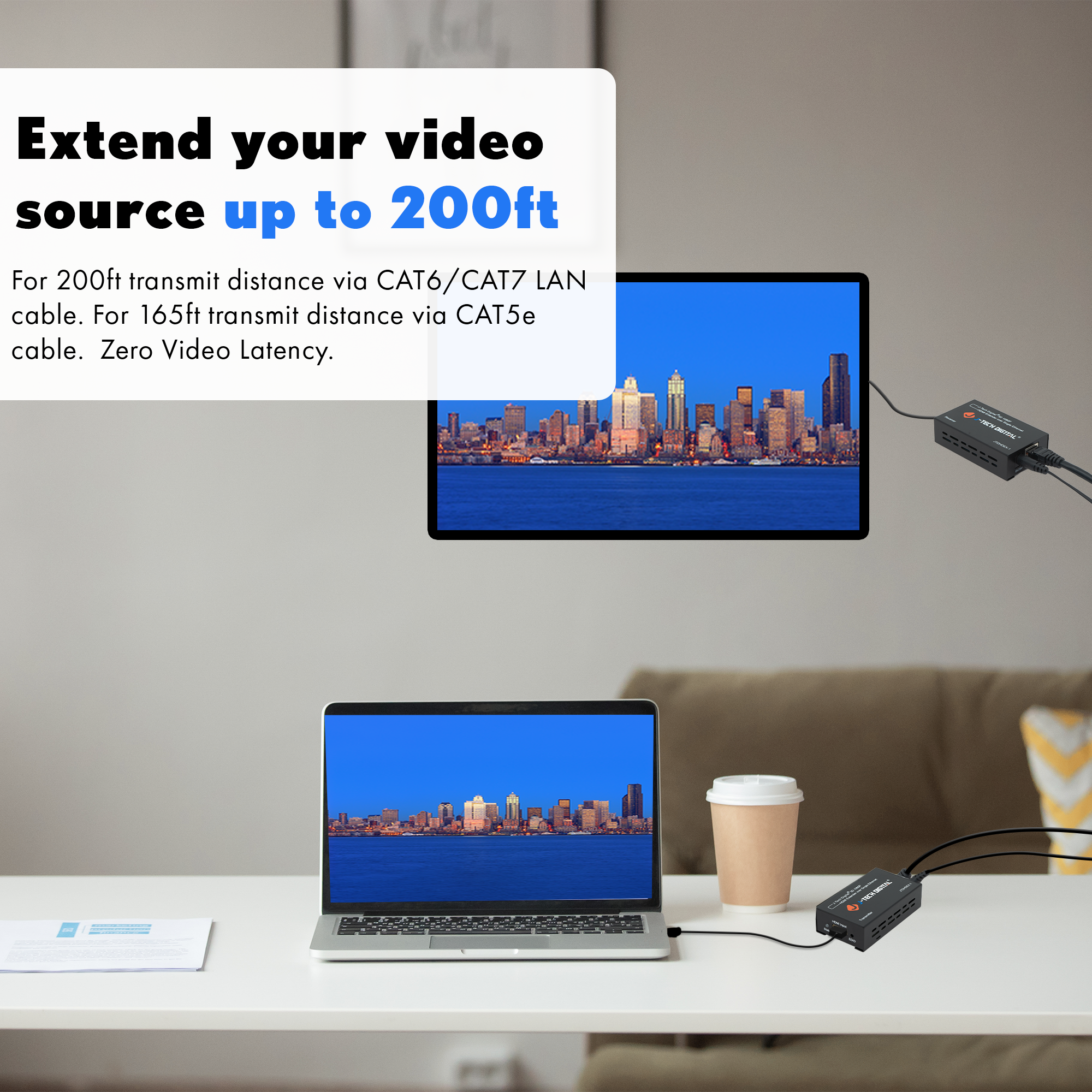 ✅ Long Distance Signal Transmission: Extend your audio/video HDMI signal up to 200ft. over a single Cat5e/6 ethernet cable without any latency