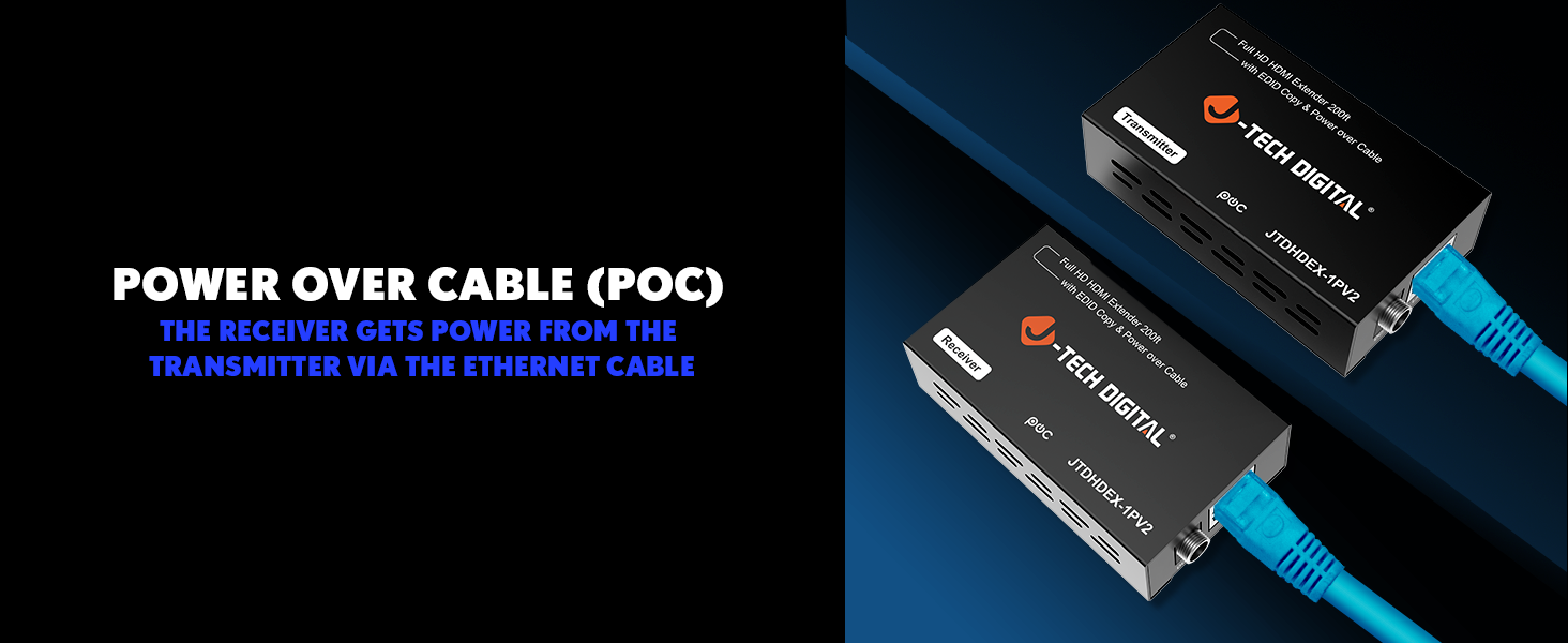 • ✅ Power over Cable (PoC) Feature: Reduce the clutter of cables and using multiple wall outlets with the PoC function. Only 1 power is needed, and can be connected to the transmitter. Receiver is powered by the connected ethernet cable.