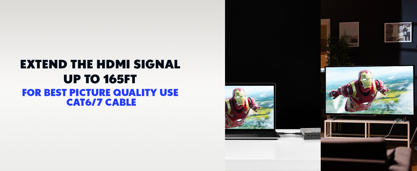 Extends 1080P signal up to 165ft. between the transmitter and receiver over a single IEEE-568B UTP cable (Cat5e/6/7)
