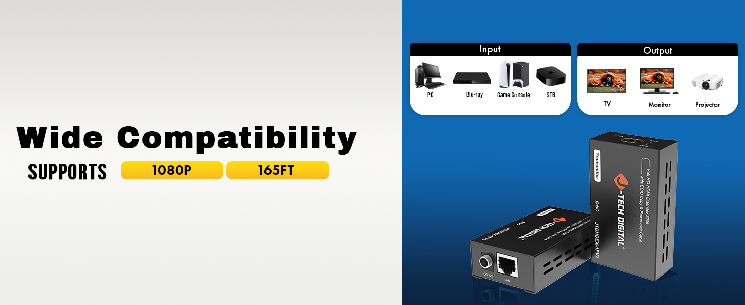 • ✅ 1080P@60Hz Up To 165Ft: Extend your full HD 1080P HDMI signal up to 165ft. over a single Cat5e/6 cable with this HDMI extender balun. Zero video latency. Note: For full 165ft., make sure to use Cat6/7 LAN cable.
