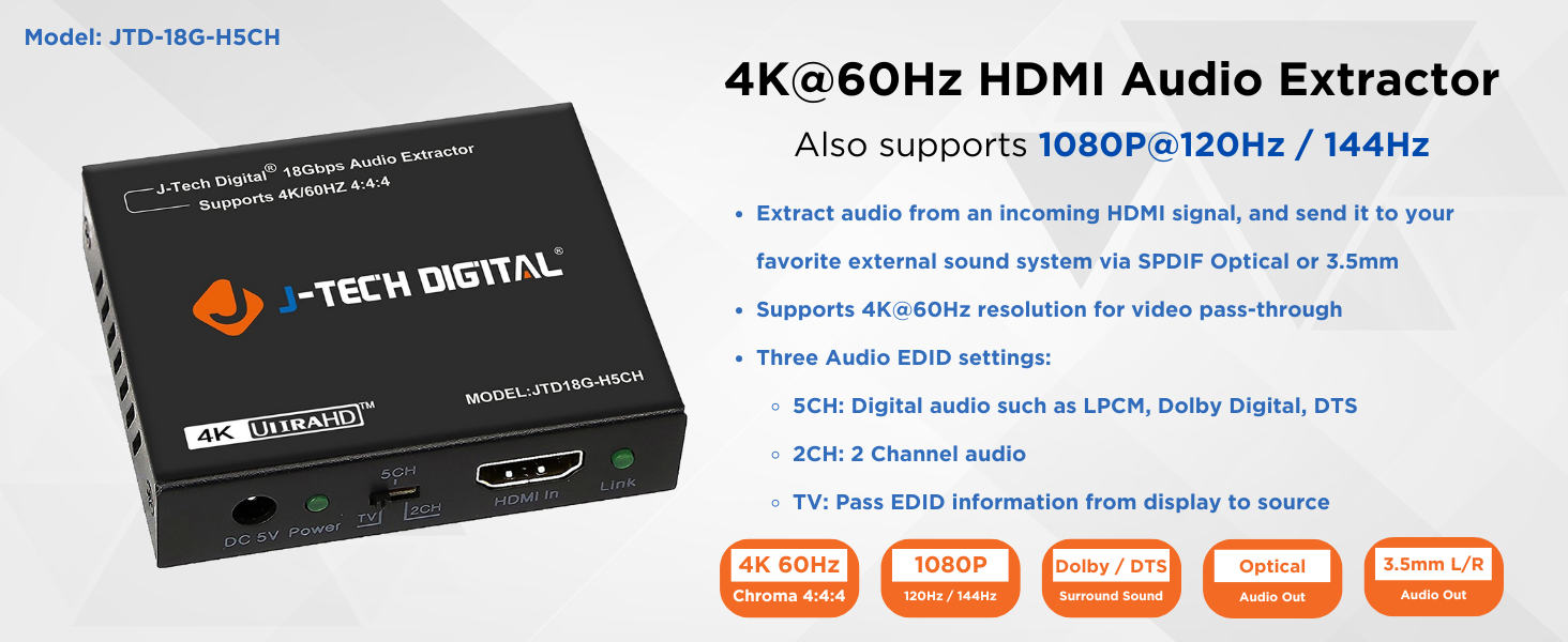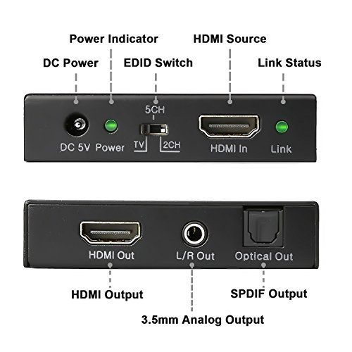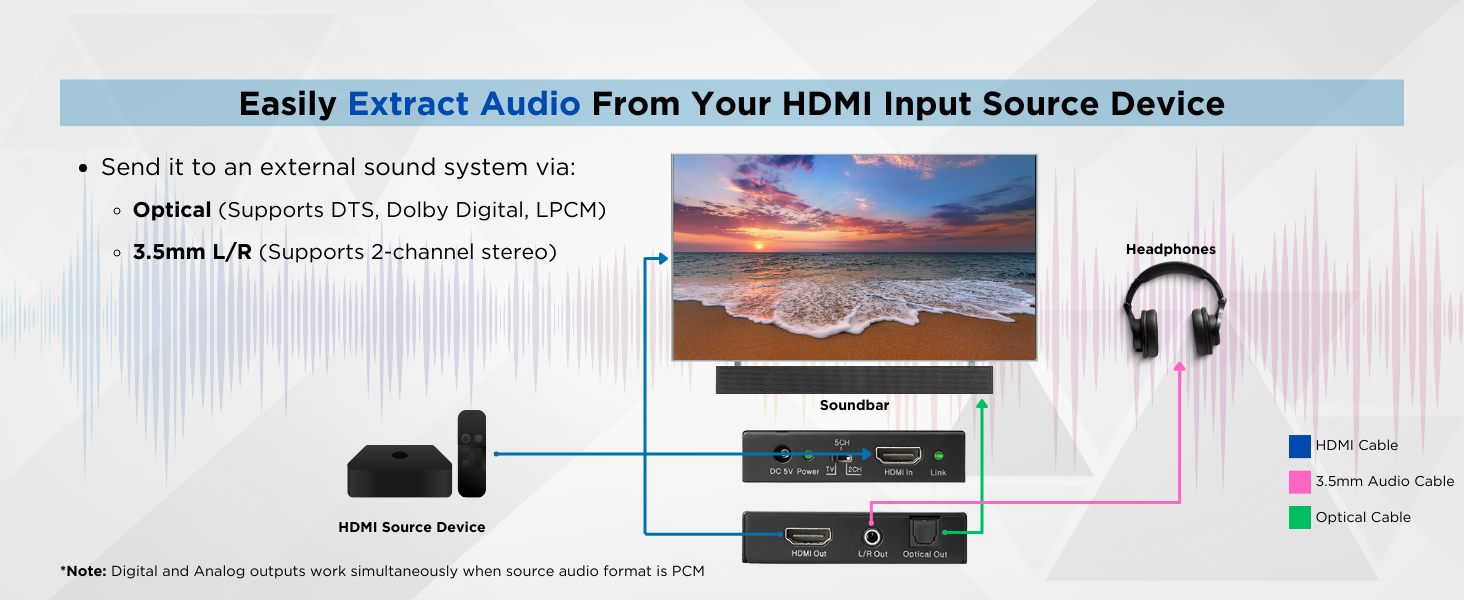 ✅ Extracts HDMI audio to multi-channel optical (SPDIF) or L/R analog audio while passing video to the display