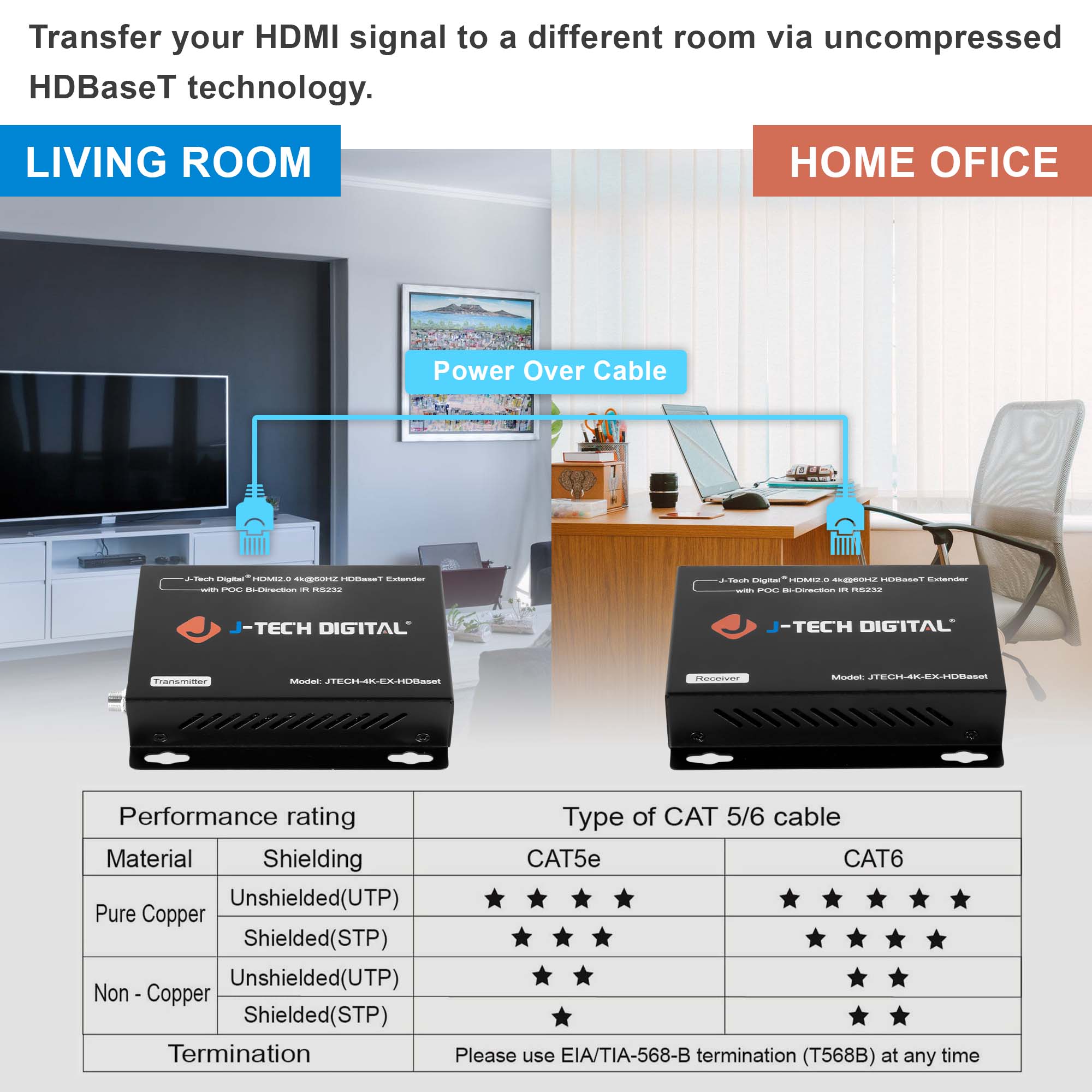 For the best performance, use solid copper Cat6 Ethernet cable—we recommend the J-Tech Digital 150ft Cat6 cable (model JTD-943) for optimal results.