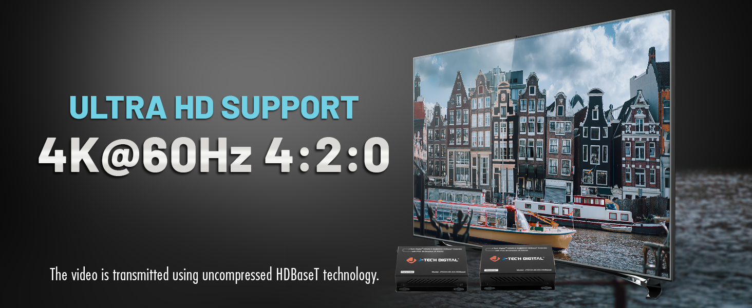 Extend your HDMI signal over long distances with this HDBaseT HDMI Extender, delivering uncompressed 4K@60Hz (4:2:0) video up to 130 ft (40m) and 1080P up to 230 ft (70m) using a single Cat5e/6 Ethernet cable. Enjoy flawless, high-definition video and audio transmission without signal loss or delay.
