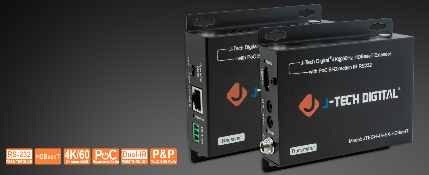 Includes bi-directional IR (20~60kHz) for remote control from either end and a Phoenix RS232 port for firmware updates or serial control integration.