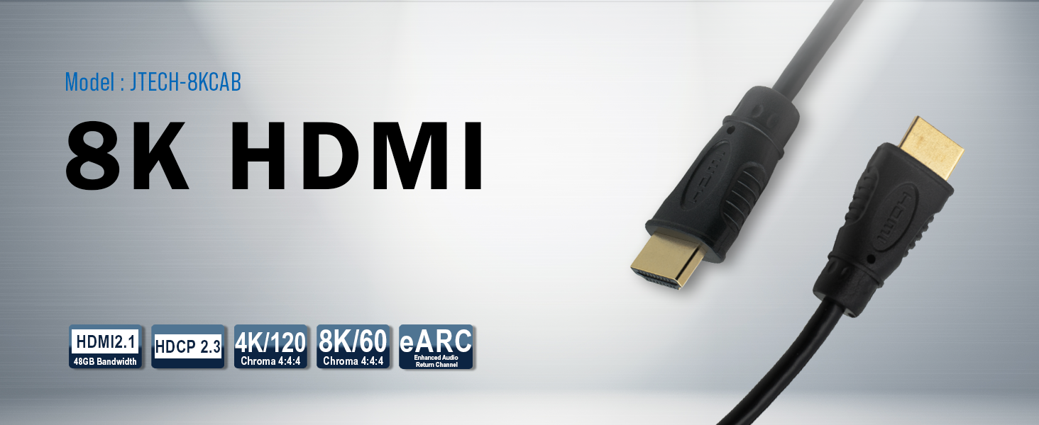JTECH-8KCAB1 HDMI 2.1 Cable – 8K@60Hz / 4K@120Hz Ultra High-Speed HDMI Cable (48Gbps, eARC, HDR, VRR)