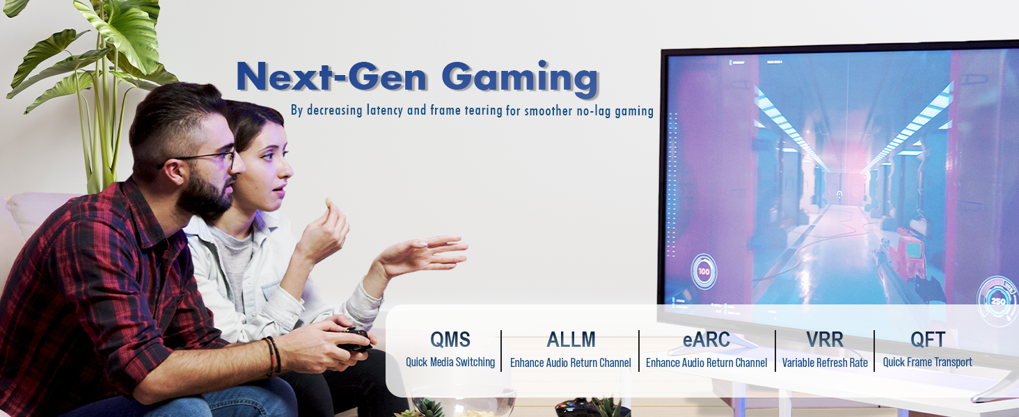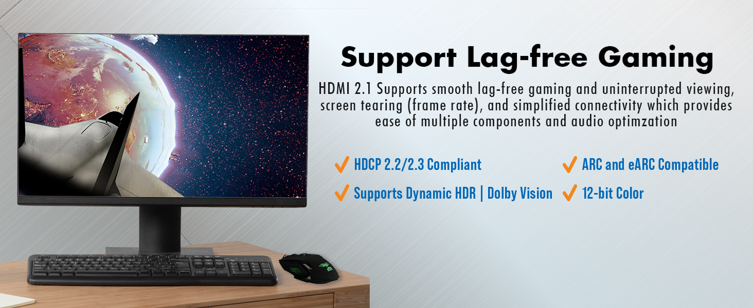 • ✅ HDMI 2.1 | HDCP 2.2/2.3 Supported: Enjoy all of the features offered by the HDMI 2.1 standard, including eARC, dynamic HDR, 48Gbps, VRR (Variable Refresh Rate), QFT (Quick Frame Transport), and ALLM (Auto Low Latency Mode).