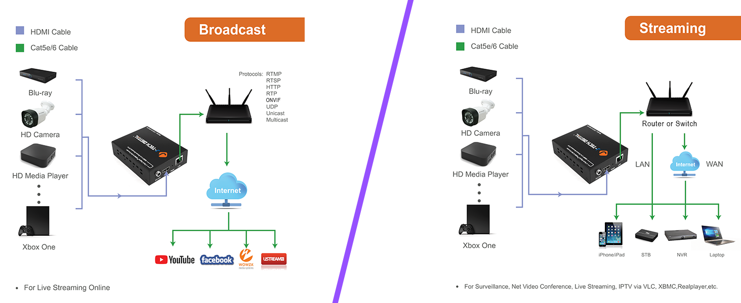 • ✅ Innovating Product, Leading Technology: This HDMI H.264 IPTV encoder is ideal for broadcast of audio/video or live streaming for TV: YouTube Live, Facebook Live (firmware update through J-Tech Digital’s website maintains RTMPS compatibility), Twitch, IBM Cloud Video/Ustream, Vimeo Live/Livestream, Periscope, IRIS/Bambuser, YouNow, Meridix, Streamspot, DaCast, Tikilive.
