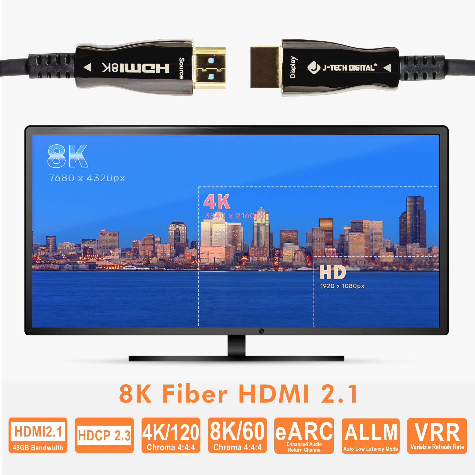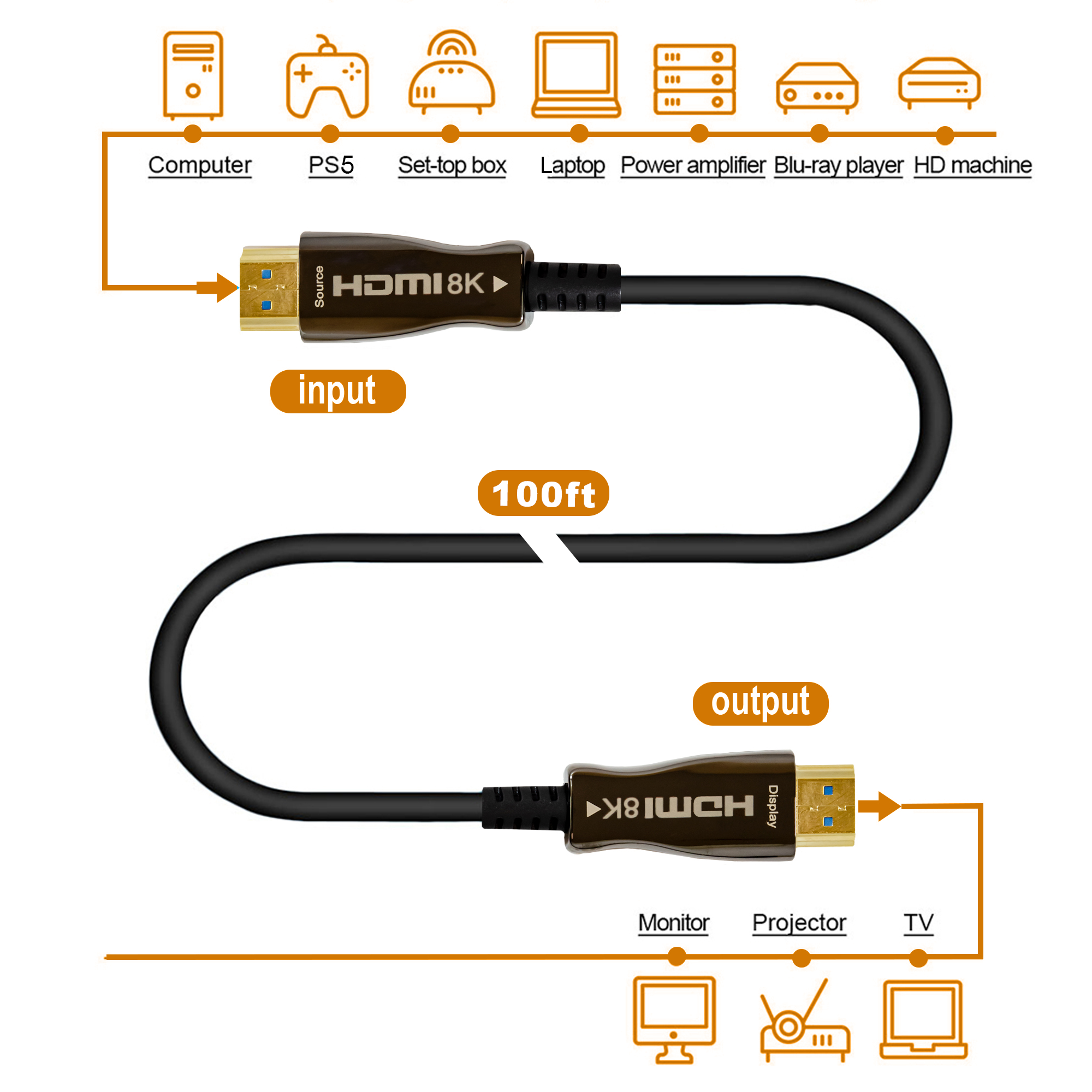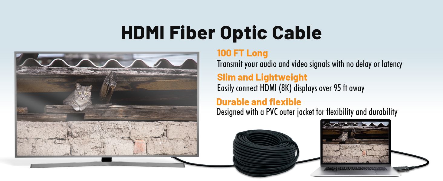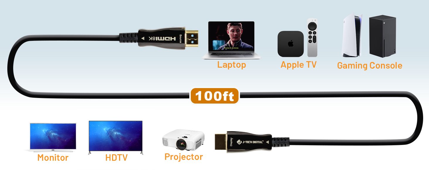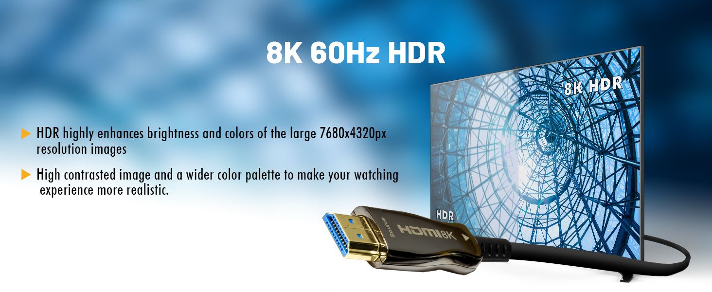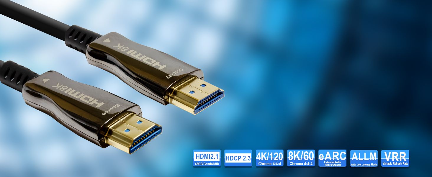 ✅ 8K@60Hz | 4K@120Hz at 100ft: This 100ft. Fiber Optic HDMI 2.1 cable supports and delivers up to 8K@60Hz content in all its glory! With ultra-high speeds up to 48Gbps and support for HDR and 12-bit color information, you can now enjoy your content as it was intended