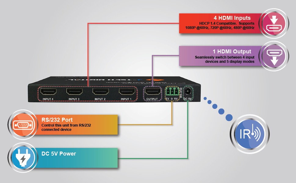 ✅ 4 Inputs For HDMI Devices: Reduce the mess of cables, and switch between 4 HDMI source devices to your display for seamless transitions between cable, game consoles, Blu-ray and more with this HDMI multiviewer