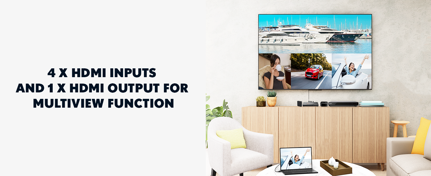 • ✅ Quad HDMI Multiviewer & Seamless Switcher: Supports viewing up to 4 HDMI sources on a single display. This 4K HDMI quad multiviewer and switcher also features seamless switching between source devices—no black screen or delay when switching from one source to another.