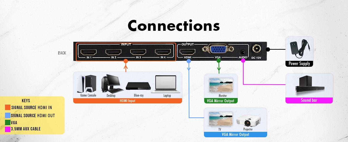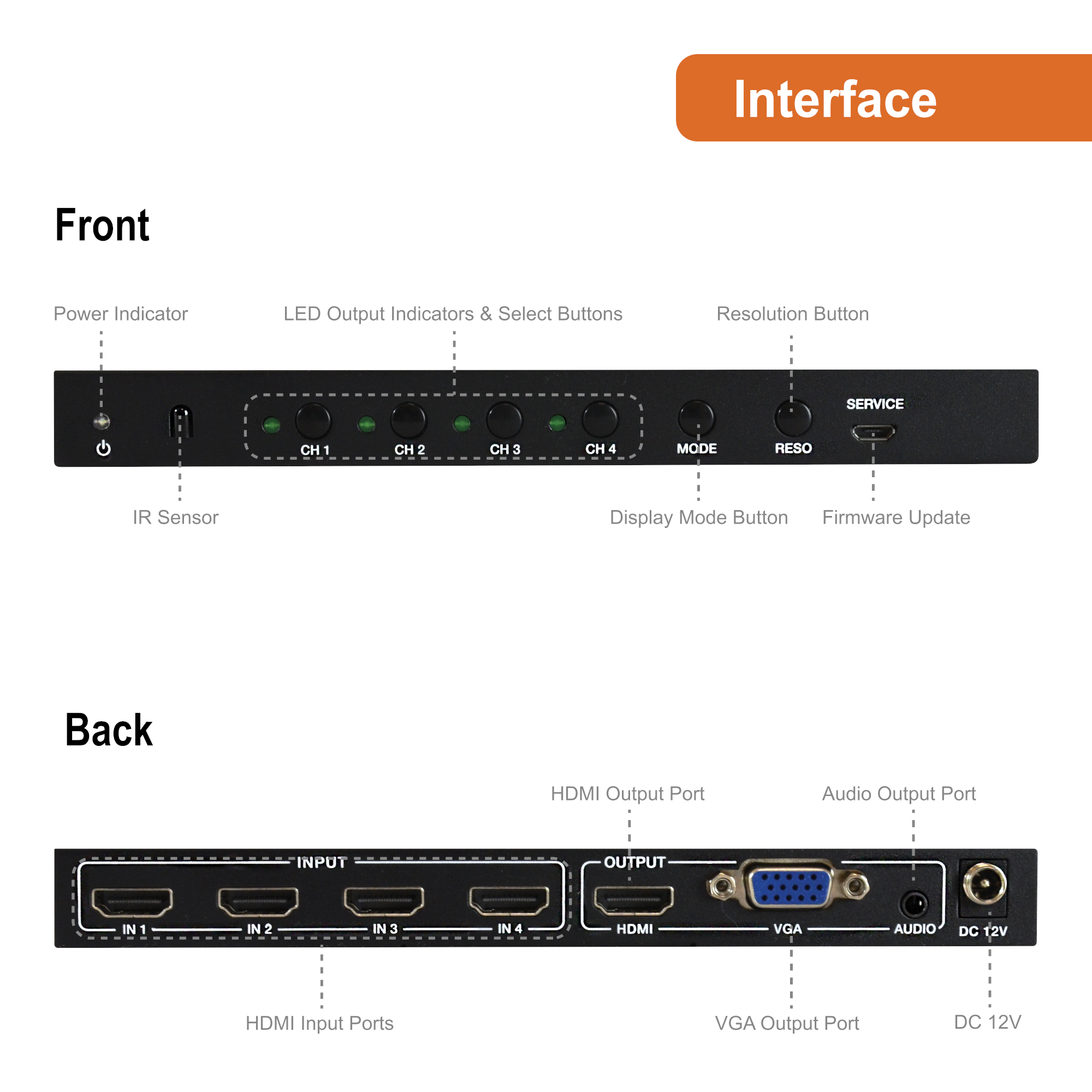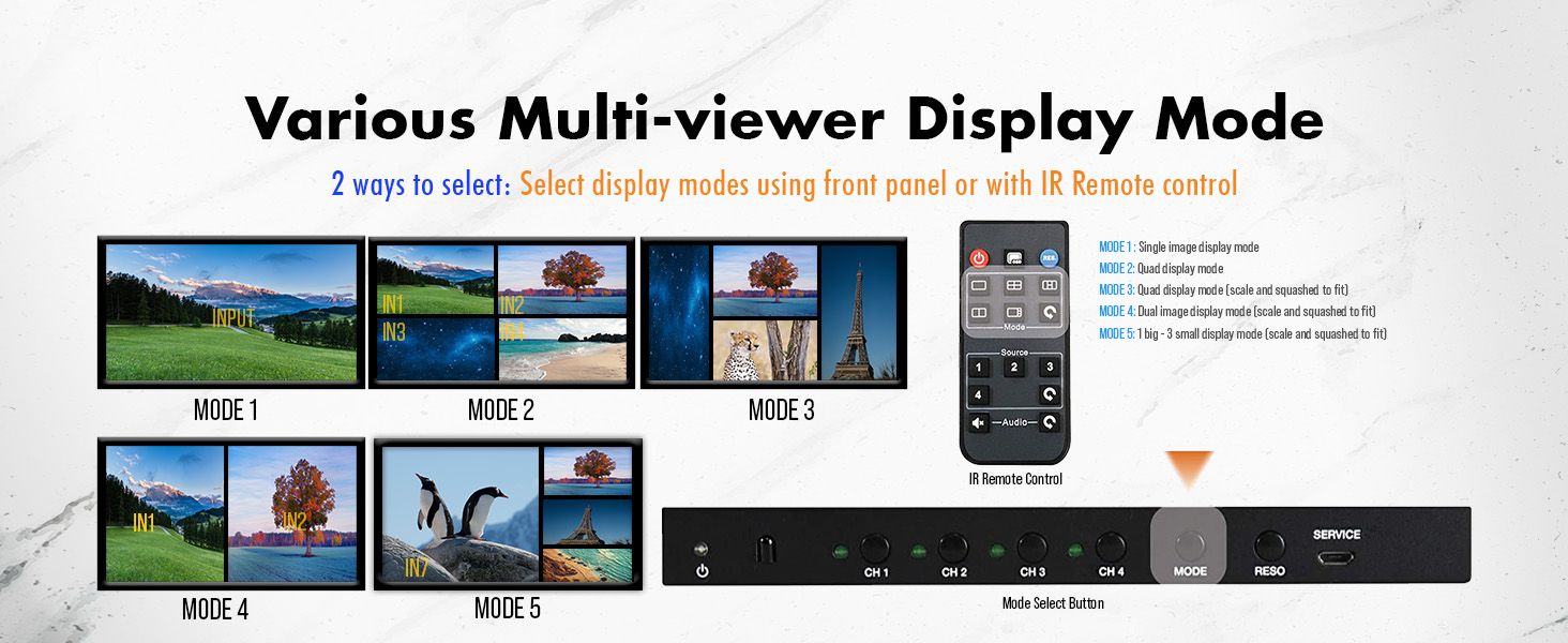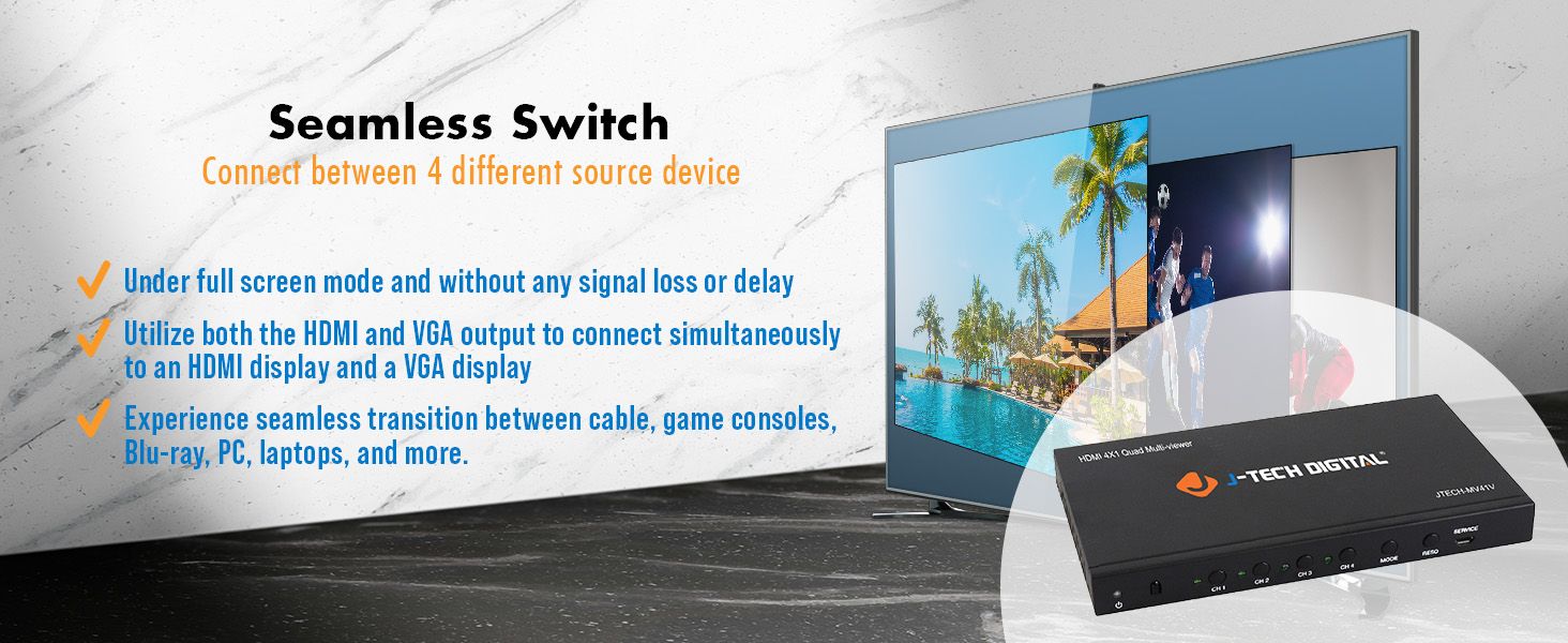 ✅ 5 Different Display Modes: This switch offers multiple ways to watch your source devices, allowing you to display 1 device, 2 devices, or all 4 devices at the same time