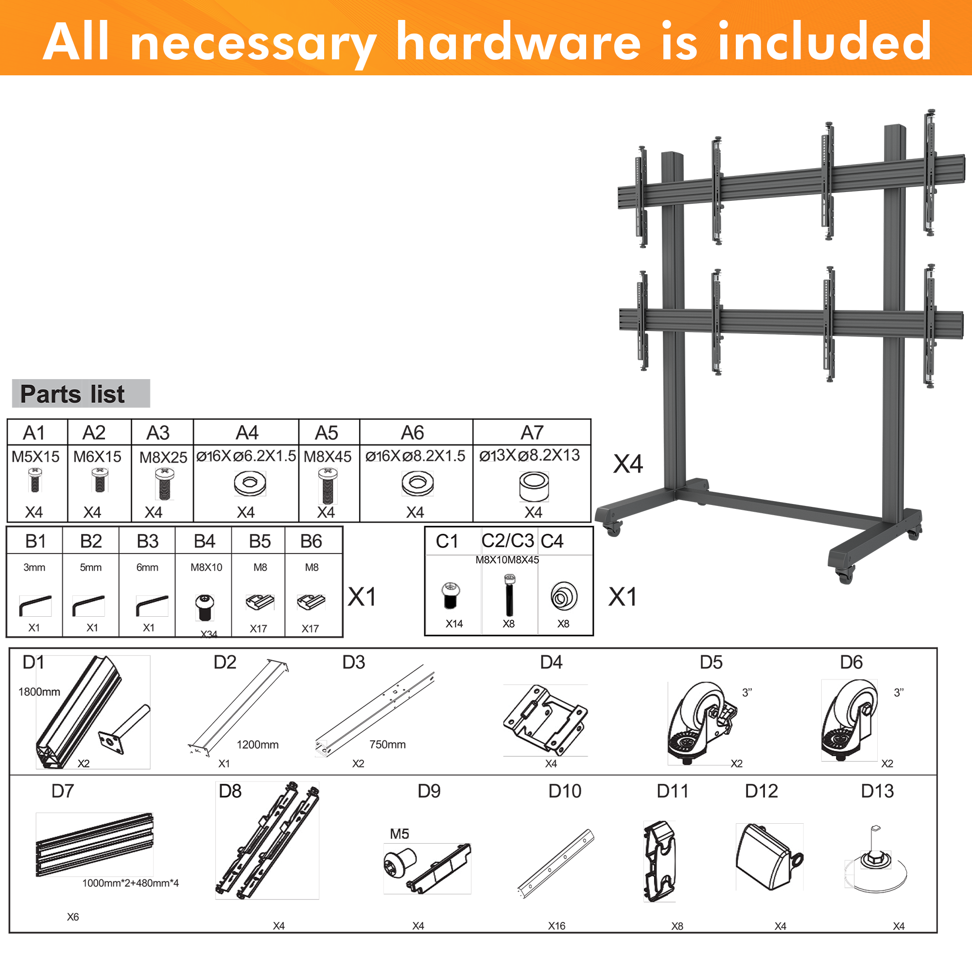 Video Wall Mount 2×2 Kit For 32” – 65” Displays | |