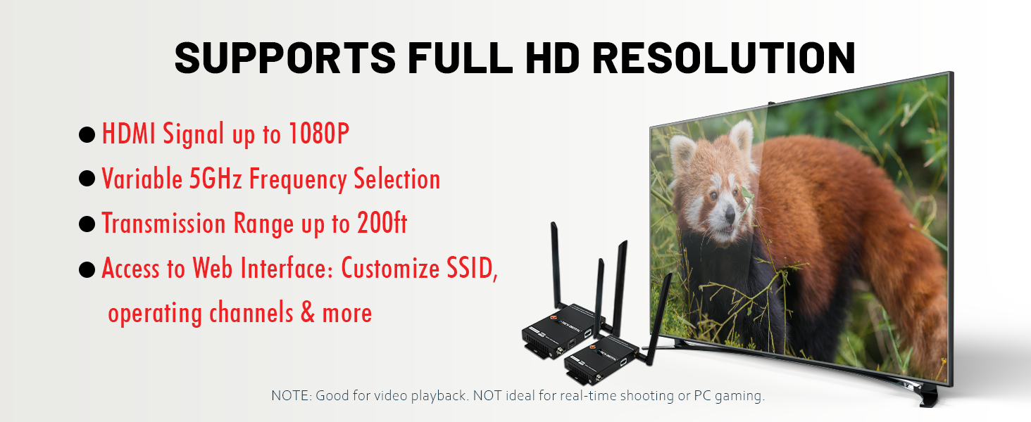 Wireless Full HD 1080P with HDMI loop output | Wi-Fi channel and SSID name can be changed.