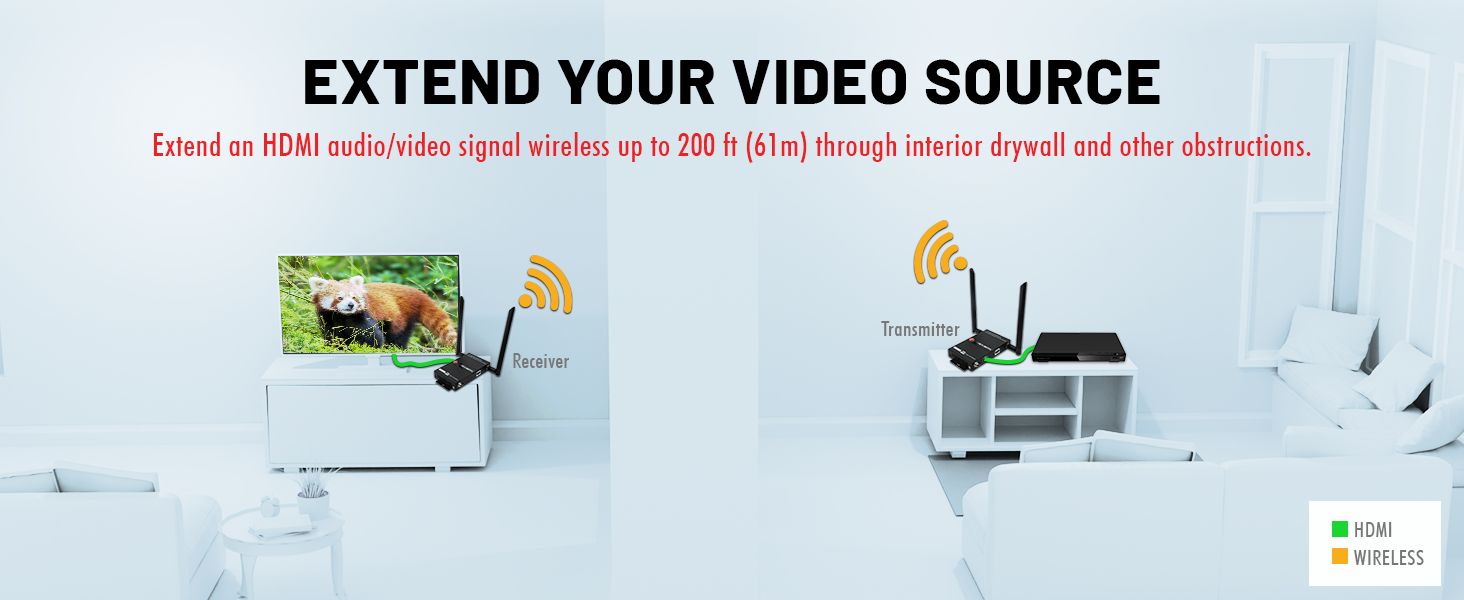 This innovative transmitter and receiver pair are capable of streaming full HD 1080p video with support for the latest movie content up to 200ft. away within the home, through walls and ceilings for your desired setup. The extender is greatly improved the signal stability and transmission range, unlike WHDI technology, for which loss of signal is a common issue.