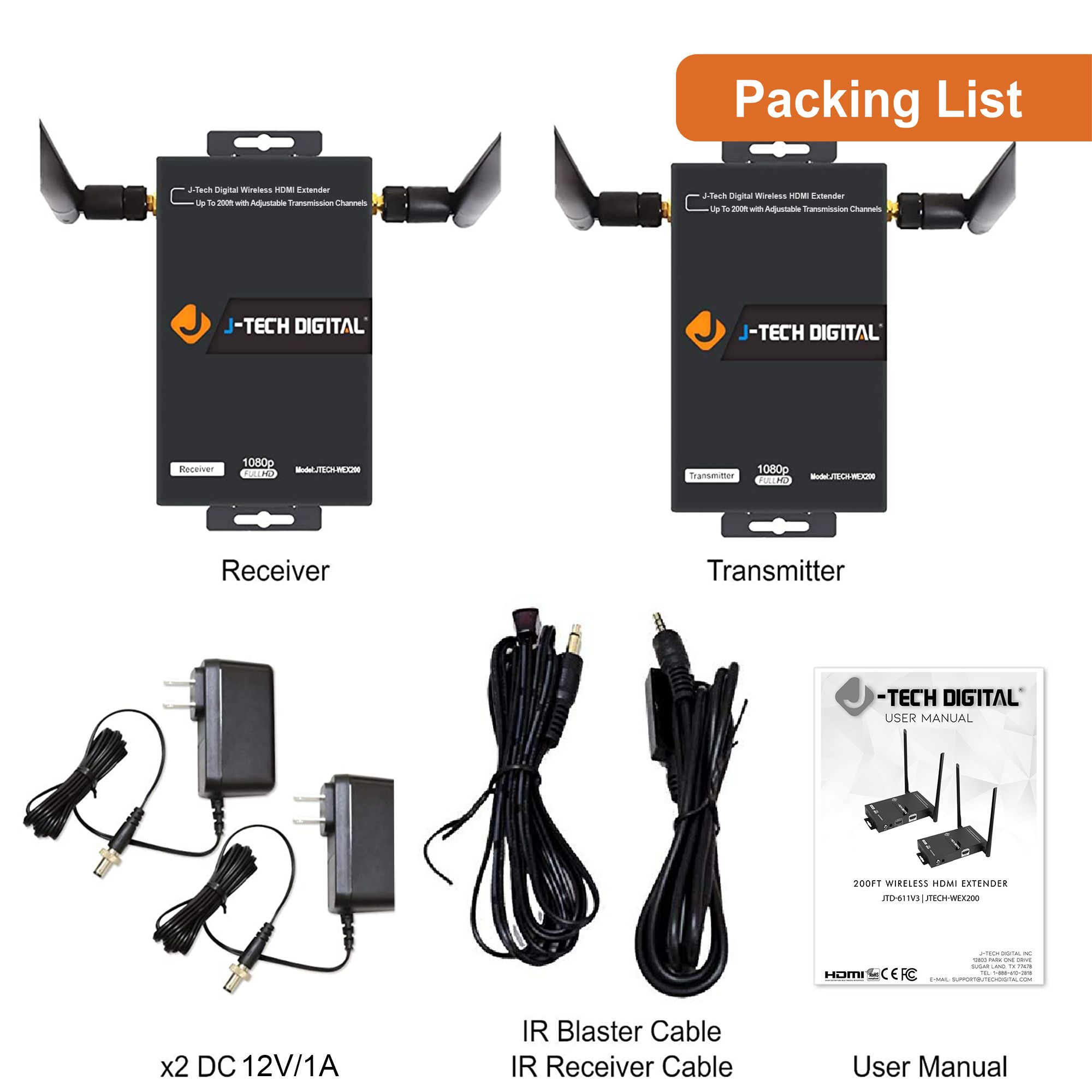 • ✅ Amazing Video Quality Up To 200 Ft Away: JTECH-WEX200V3 is the most powerful wireless HDMI extender on the market. Extend an HDMI audio/video signal wirelessly up to 200 ft (61m) through interior drywall and other obstructions.