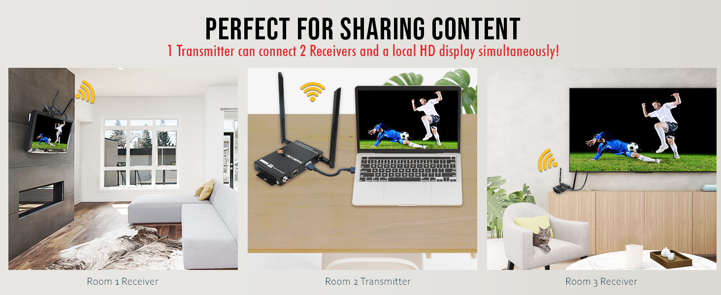 • ✅ Two Receivers At Same Time: Connect one transmitter to two JTECH-WEX200V3 receivers and a local HD display simultaneously! Perfect for sharing content like movies or security systems throughout the house or business. Additional receiver sold separately.